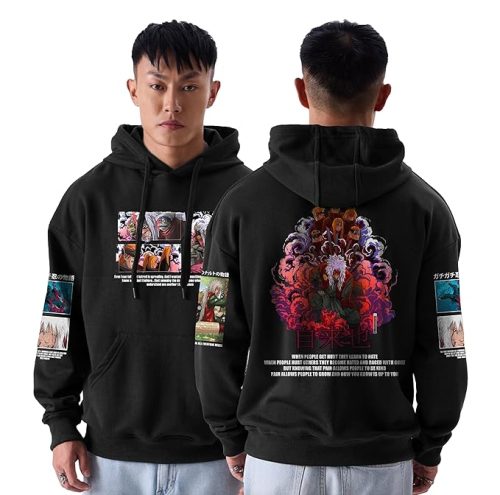 crazymonk Men’s Cotton Printed Full Sleeve Oversized Kaiju No.8 Hoodie – Black